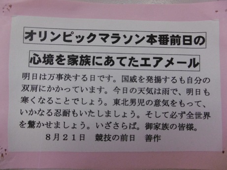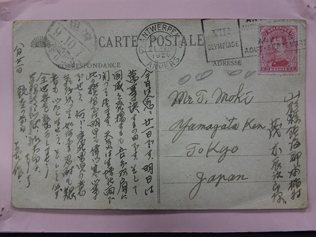 アントワープ五輪出場時に茂木善作氏が家族に宛てたハガキ